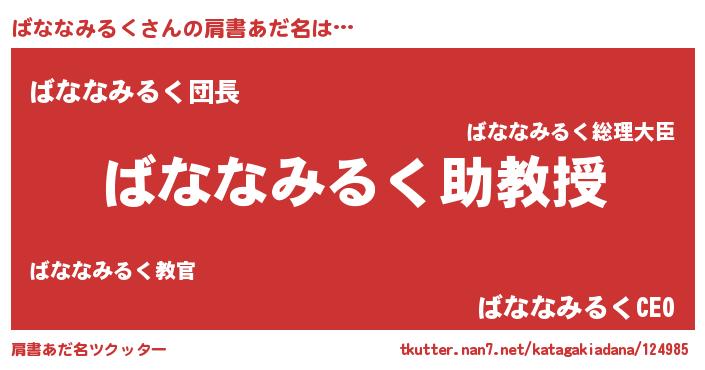 | ポケモン風あだ名 | 『バックウザ』『ヒバナナミルク』 |