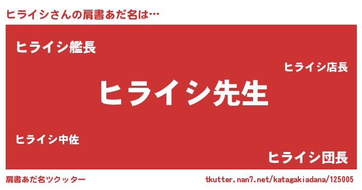 | 男性向けラノベタイトル風あだ名 | 『ヒライシという概念が存在しない退屈な世界 』 |