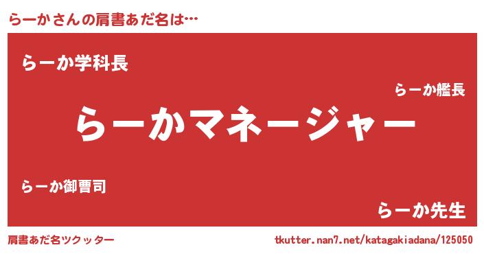 | ヘコむあだ名 | 『らーか(小並感)』『らーもー』 |