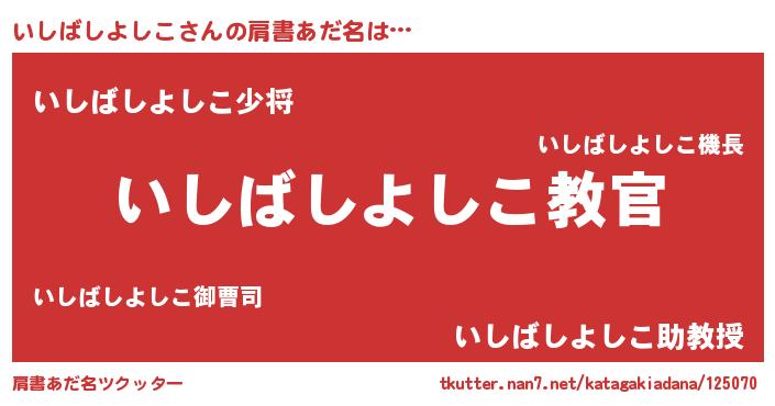 | ヘコむあだ名 | 『いしっふぃ~』『いしばしよしこ(苦笑)』 |