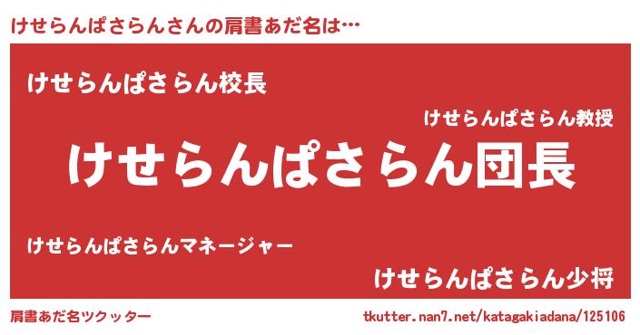 | 意味不明あだ名 | 『とにかく怪しいけせらんぱさらん』 |