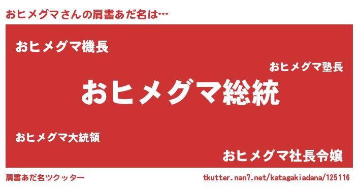 | 意味不明あだ名 | 『自称おヒメグマ』『ペロリンおヒメグマ』 |