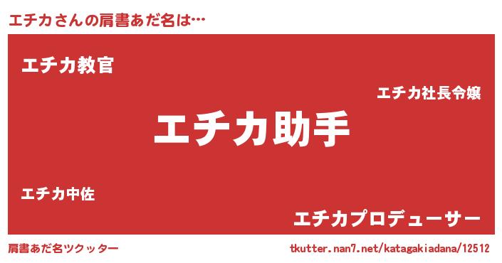 | 男性向けラノベタイトル風あだ名 | 『おまえをオタクにしてやるから、俺をエチカにしてくれ! 』 |