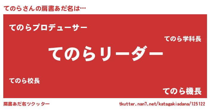 | 意味不明あだ名 | 『とにかく怪しいてのら』『自称てのら』 |