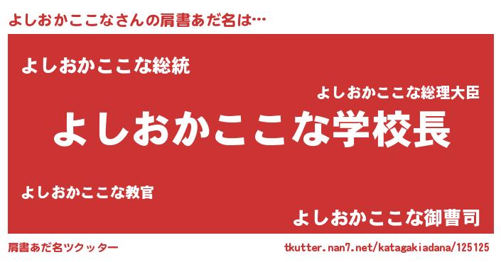 | 女子向けラノベタイトル風あだ名 | 『死神よしおかここなの再婚』 |