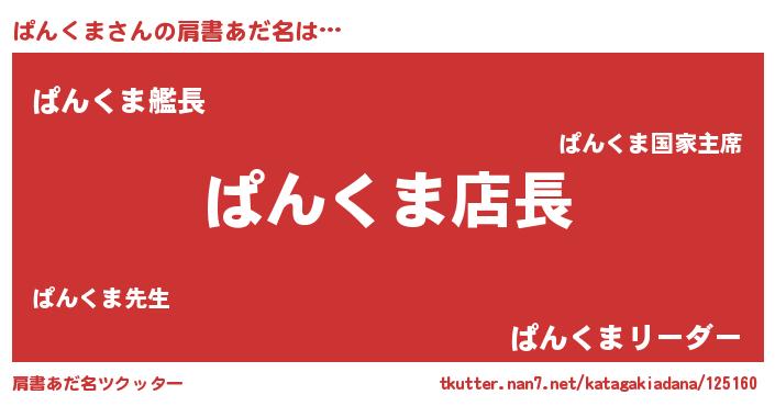 | 欧米人風あだ名 | 『マイケルぱんくま』『ウサインぱんくま』 |