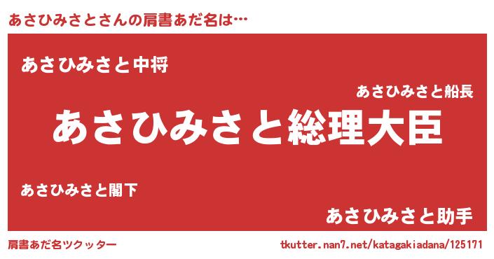 | 男性向けラノベタイトル風あだ名 | 『やはりあさひみさとの青春ラブコメはまちがっている 』 |
