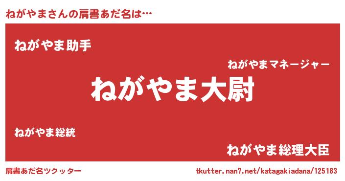 | 男性向けラノベタイトル風あだ名 | 『転生したらねがやまだった件』 |