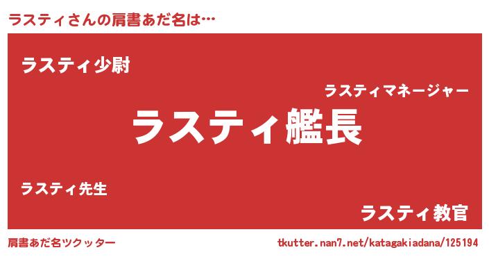 | ヘコむあだ名 | 『ラスティ(爆)』『ラス太郎』『豆乳』 |