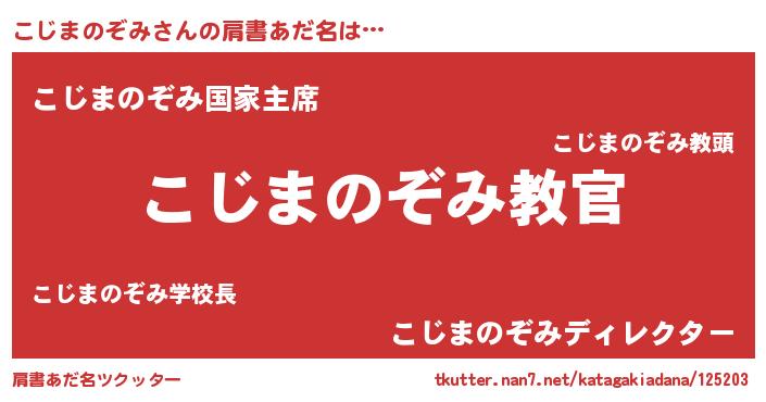 | 胡散臭い通販商品みたいなあだ名 | 『あなたにだけ特別に提供する100年もののヴィンテージワイン…その名も「こじまのぞみ」』 |
