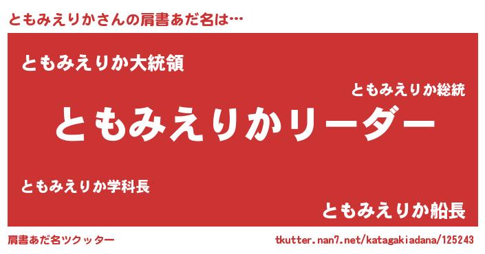 | 女子向けラノベタイトル風あだ名 | 『ともみえりかは平凡を望む』 |