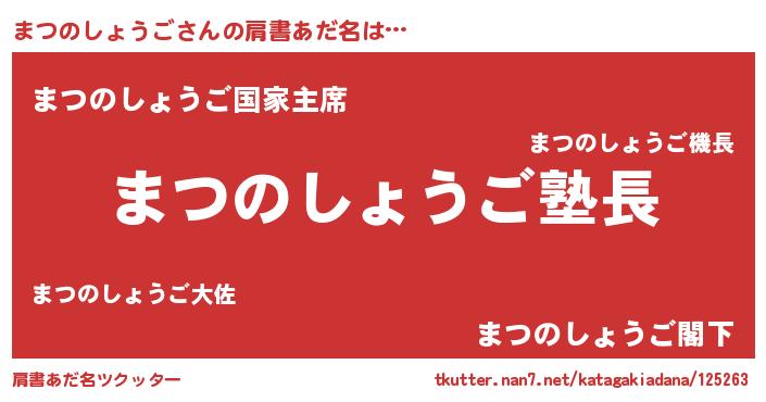| 男性向けラノベタイトル風あだ名 | 『まつのしょうごの嫁は女の子じゃないと思った?』 |