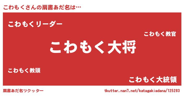 | 男性向けラノベタイトル風あだ名 | 『転生したらこわもくだった件』 |