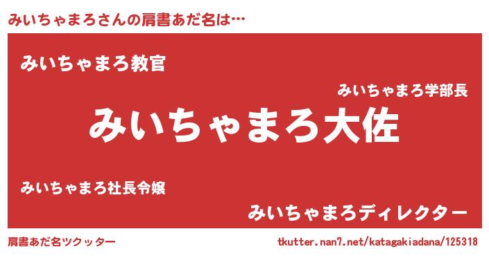 | 男性向けラノベタイトル風あだ名 | 『転生したらみいちゃまろだった件』 |