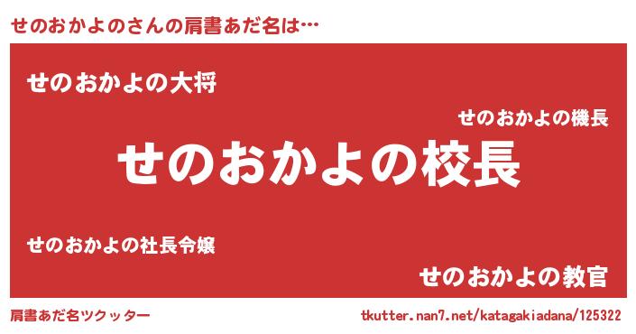 | ヘコむあだ名 | 『せのおかよの(笑)』『せのっふぃ~』 |