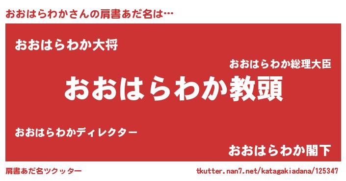 | ヒーロー風カッコイイあだ名 | 『ネオオオハラワカ』『仮面オオダー』 |