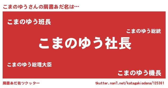 | ポケモン風あだ名 | 『コマチュウ』『ヒコマノユウ』 |