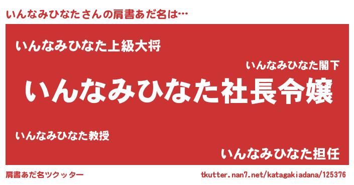| ヘコむあだ名 | 『いんもー』『いんなみひなた(遠い目)』 |