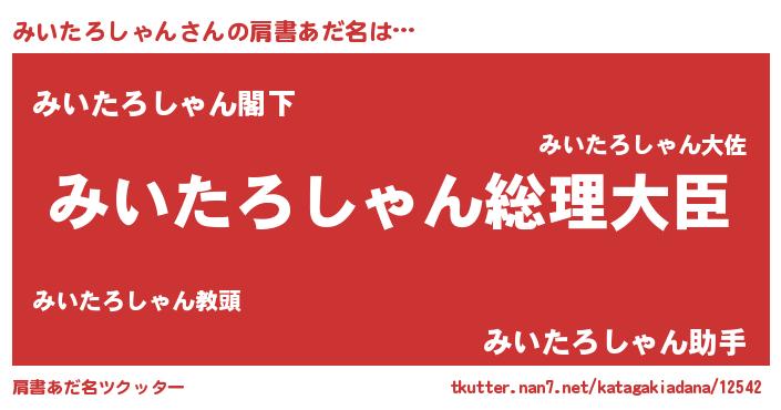 | 男性向けラノベタイトル風あだ名 | 『やはりみいたろしゃんの青春ラブコメはまちがっている 』 |