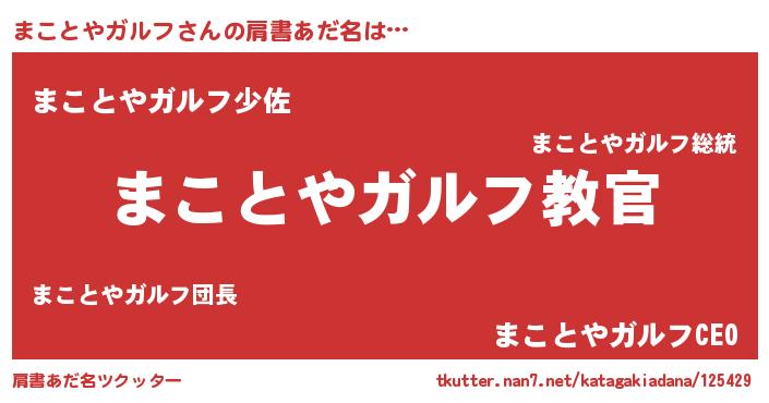 | 男性向けラノベタイトル風あだ名 | 『魔弾の王とまことやガルフ』 |