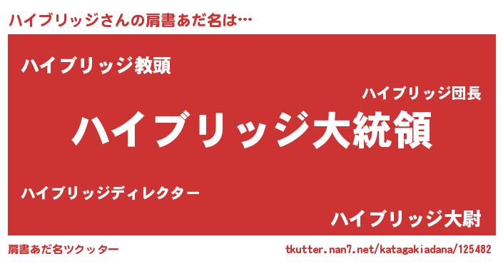 | 伝説のあだ名 | 『秘められし忍者ハイブリッジ』 |