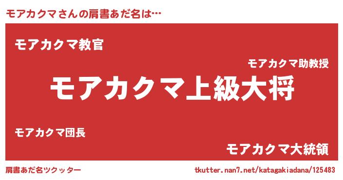 | ヒーロー風カッコイイあだ名 | 『仮面モアダー』『愛の使者モアカクマ』 |