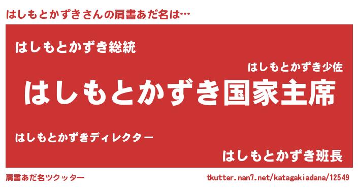 | 女子向けラノベタイトル風あだ名 | 『はしもとかずきの雑貨屋さん』 |
