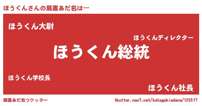 | ヒーロー風カッコイイあだ名 | 『最強戦士ホウクン』『スーパーホウクン』 |