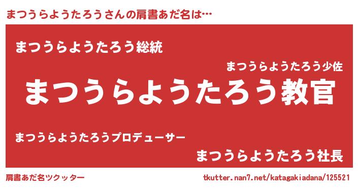 | 意味不明あだ名 | 『住所不定無職まつうらようたろう(6歳)』 |