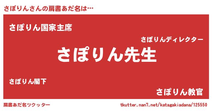 | 意味不明あだ名 | 『永久保存さぽりん』『自称さぽりん』 |