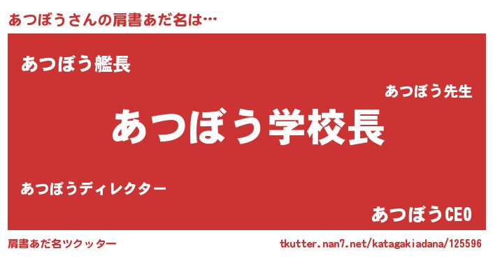 | 女子向けラノベタイトル風あだ名 | 『あつぼう恋絵巻』 |