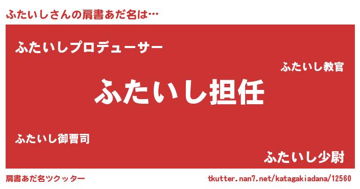 | 男性向けラノベタイトル風あだ名 | 『ふたいしという概念が存在しない退屈な世界 』 |