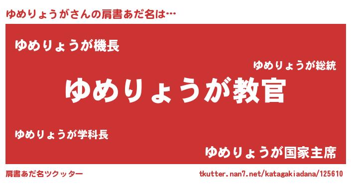 | 男性向けラノベタイトル風あだ名 | 『この素晴らしい世界にゆめりょうがを!』 |