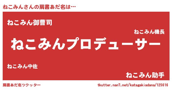 | 欧米人風あだ名 | 『アンジェラ・ねこみん』 |