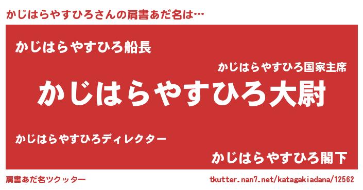 | 男性向けラノベタイトル風あだ名 | 『転生したらかじはらやすひろだった件』 |