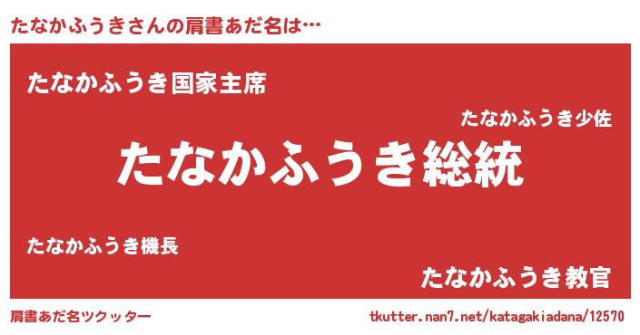 | 男性向けラノベタイトル風あだ名 | 『Re:たなかふうきから始める異世界生活』 |