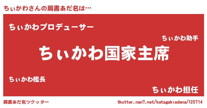 | 女子向けラノベタイトル風あだ名 | 『ちぃかわの雑貨屋さん』 |