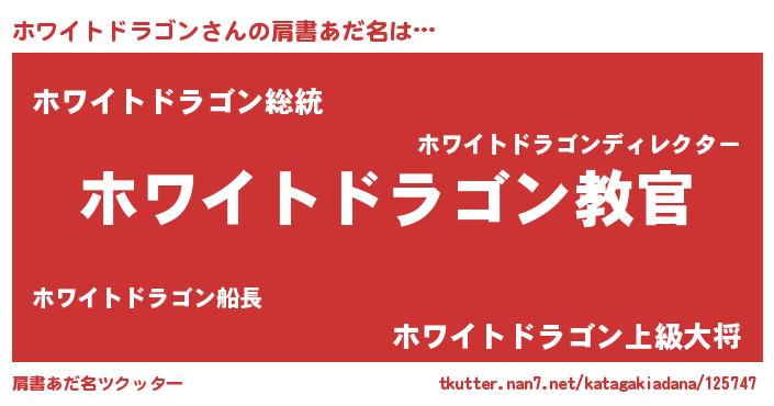 | ヒーロー風カッコイイあだ名 | 『仮面ホワダー』『ネオホワイトドラゴン』 |