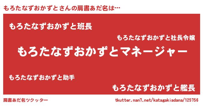 | 意味不明あだ名 | 『とにかく怪しいもろたなずおかずと』 |