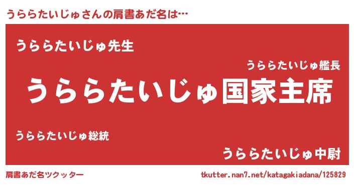 | 意味不明あだ名 | 『うららたいじゅフォーエバー』 |