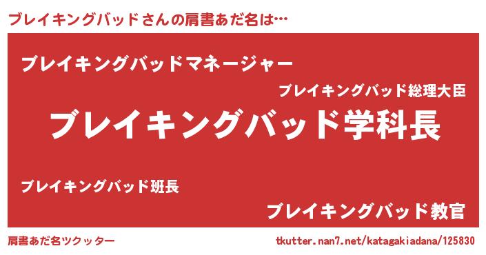| 男性向けラノベタイトル風あだ名 | 『ノーゲーム・ノーブレイキングバッド』 |