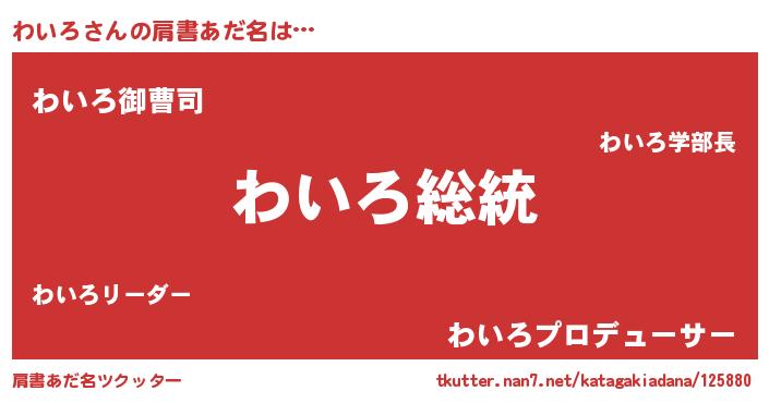 | 意味不明あだ名 | 『自称わいろ』『ペロリンわいろ』 |