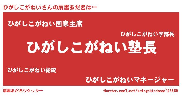 | 意味不明あだ名 | 『とにかく怪しいひがしこがねい』 |