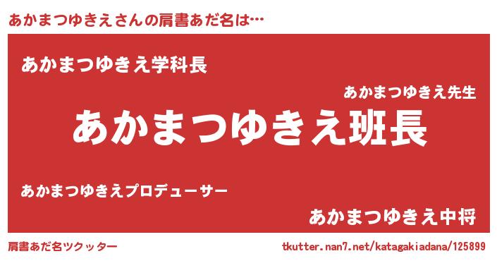 | 女子向けラノベタイトル風あだ名 | 『あかまつゆきえは平凡を望む』 |