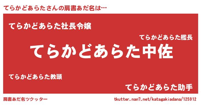 | ヒーロー風カッコイイあだ名 | 『スーパーテラカドアラタ』 |