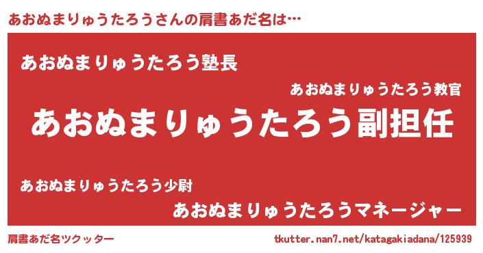 | ヘコむあだ名 | 『あおぬまりゅうたろう(震え声)』 |