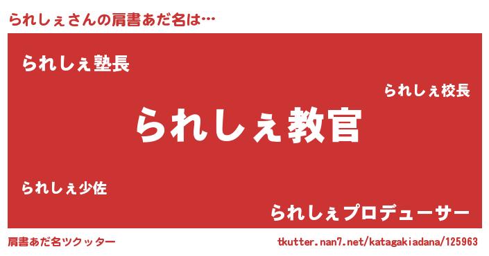 | ポケモン風あだ名 | 『ラーレイ』『ヒラレシェ』 |