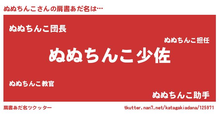 | 男性向けラノベタイトル風あだ名 | 『転生したらぬぬちんこだった件』 |
