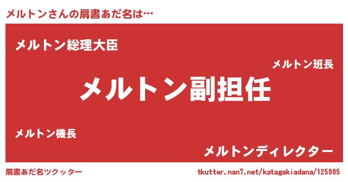 | ヘコむあだ名 | 『メルトン(震え声)』『酢こんぶ』 |