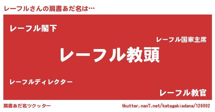 | 意味不明あだ名 | 『永久保存レーフル』『自称レーフル』 |